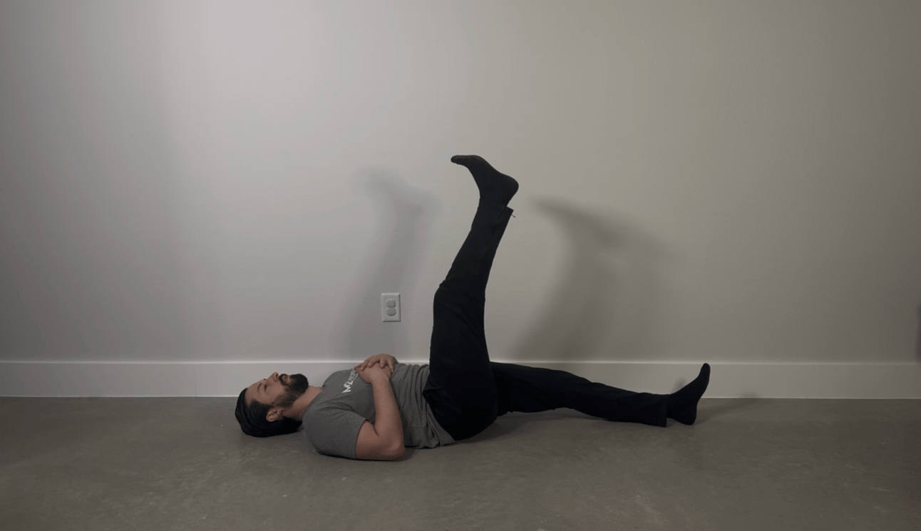 Knee straight (lifting your leg while lying flat)