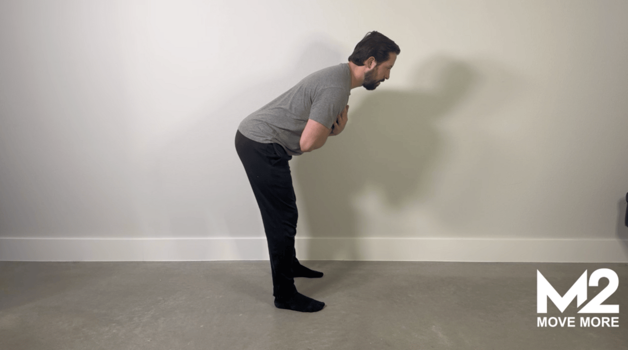 Place hands on your chest and bend over while keeping your spine straight and bending only at the hips.